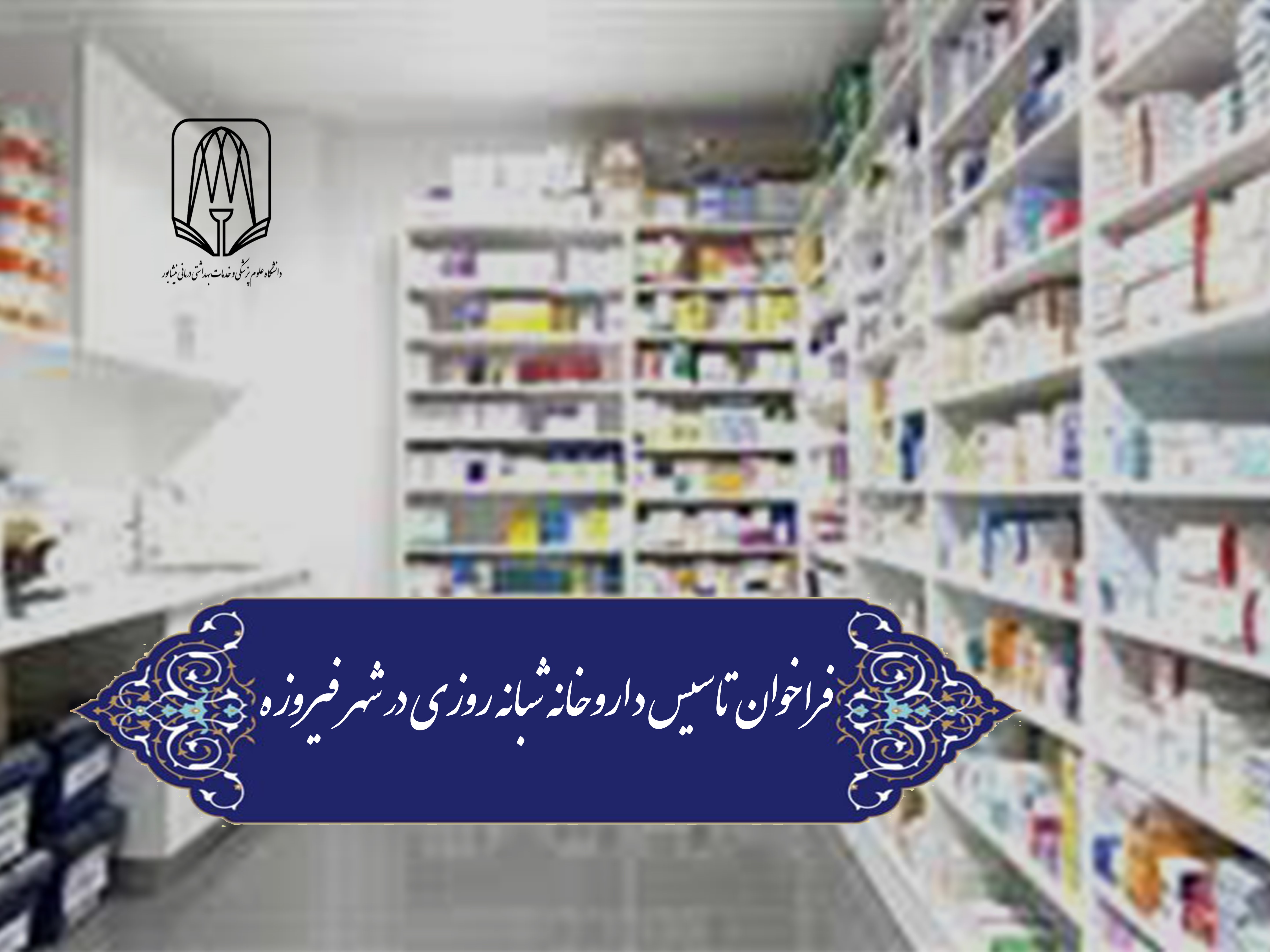 با عنایت به اینکه معاونت غذا و دارو دانشگاه علوم پزشکی نیشابور در نظر دارد نسبت به تاسیس داروخانه شبانه روزی در شهر فیروزه که تحت پوشش دانشگاه علوم پزشکی نیشابور میباشد طبق ضوابط تاسیس داروخانه اقدام نماید، لذا متقاضیان واجد شرایط در صورت تمایل میتوانند حد اکثر تا تاریخ 23/10/1401 نسبت به بارگذاری مدارک در سامانه مدیریت امور داروخانه ها HIX به آدرس pharmacy.fda.gov.ir اقدام نمایند.