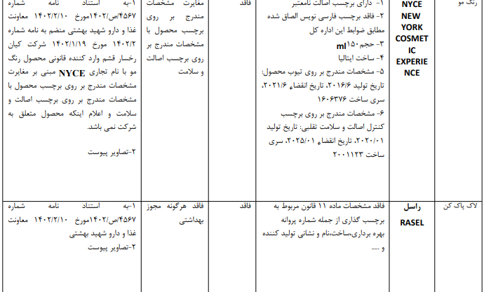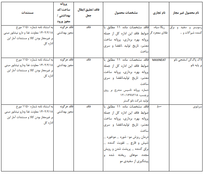 اداره کل امور فراورده‌های آرایشی و بهداشتی سازمان غذا و دارو دستور جمع آوری ۱۰ محصول غیرمجاز از سطح عرضه را صادر کرد.